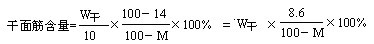 3、干面筋含量是以每百克含水量為14%的小麥粉含有干面筋的克數(shù)來(lái)表示的,如試樣質(zhì)量為10g而干面筋稱得質(zhì)量為W干(g),則干面筋含量可按下列公式計(jì)算: