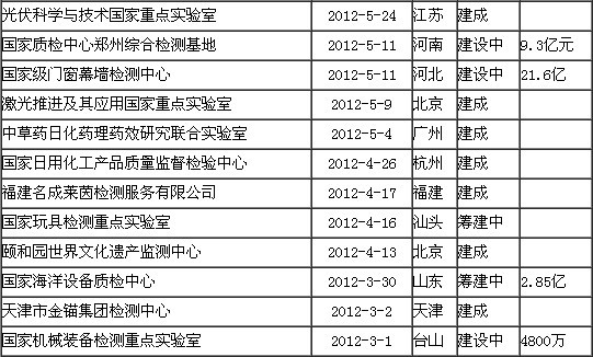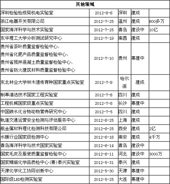 2012年上半年儀器領(lǐng)域?qū)嶒?yàn)室的建設(shè)情況