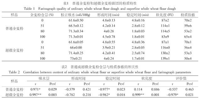 一、磨粉粒度對(duì)全麥粉面團(tuán)粉質(zhì)特性的影響