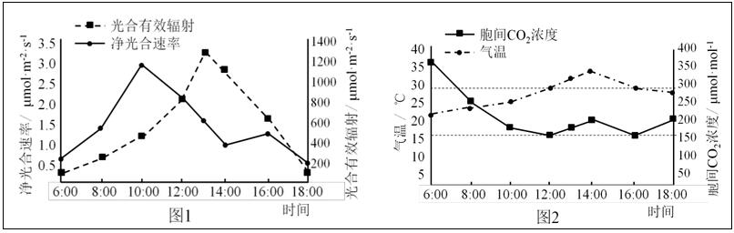 經(jīng)光合有效輻射計(jì)檢測(cè)分析得出:6:00時(shí)光合有效輻射是限制因素,所以適當(dāng)增加細(xì)胞間CO2濃度,凈光合速率基本相同,12:00和16:00時(shí)由于溫度相同,細(xì)胞間CO2濃度相同,僅考慮環(huán)境因素,那么達(dá)到飽和的光飽和點(diǎn)應(yīng)該基本相同。因?yàn)樘鞖馇缋剩?4:00時(shí)的氣溫最高,酶的活性降低,14:00后細(xì)胞間CO2濃度下降,說明凈光合速率增強(qiáng),說明酶的活性增加,氣溫應(yīng)該由過高而降低,但經(jīng)過光合有效輻射計(jì)的檢測(cè)發(fā)現(xiàn)這段時(shí)間內(nèi)光合有效輻射超過飽和點(diǎn),不是限制因素,因此光合有效輻射減小,凈光合速率仍然增強(qiáng)。