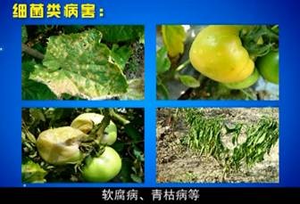 細菌類病害:潰腸病、細菌性角斑病、軟腐病、青枯;